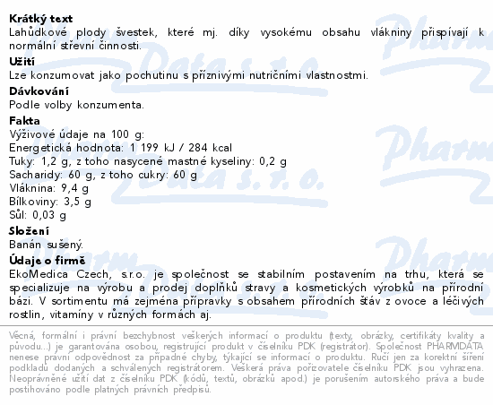 Švestky sušené 250g EkoMedica