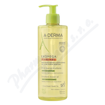 A-DERMA Exomega CONTROL Zvláčňující sprchový olej, který je vhodný k použití již od narození, čistí, vyživuje a zklidňuje suchou pokožku se sklonem k atopickému ekzému.