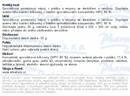 Syrovátkový proteinový nápoj v prášku s enzymy se sladidlem s vanilkou. Dopřejte svému tělu kvalitní bílkoviny z čistého syrovátkového koncentrátu WPC 80 %.