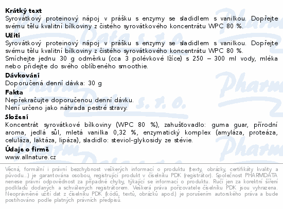 Syrovátkový proteinový nápoj v prášku s enzymy se sladidlem s vanilkou. Dopřejte svému tělu kvalitní bílkoviny z čistého syrovátkového koncentrátu WPC 80 %.