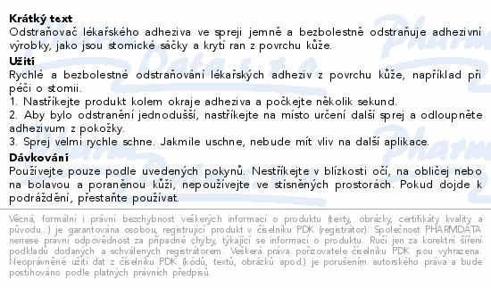 Odstraňovač lékařského adheziva ve spreji jemně a bezbolestně odstraňuje adhezivní výrobky, jako jsou stomické sáčky a krytí ran z povrchu kůže.