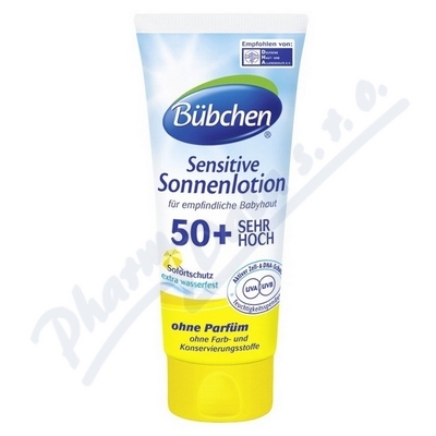 Bubchen Sensitive opalovací mléko OF 50 chrání pokožku před slunečním zářením s vysokou UV ochranou. Bubchen dětská kosmetika neobsahuje barviva, konzervační látky a parfém.