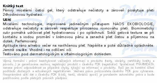 Pěnivý micelární čisticí gel, který odstraňuje nečistoty a zároveň poskytuje pleti 24hodinovou hydrataci.