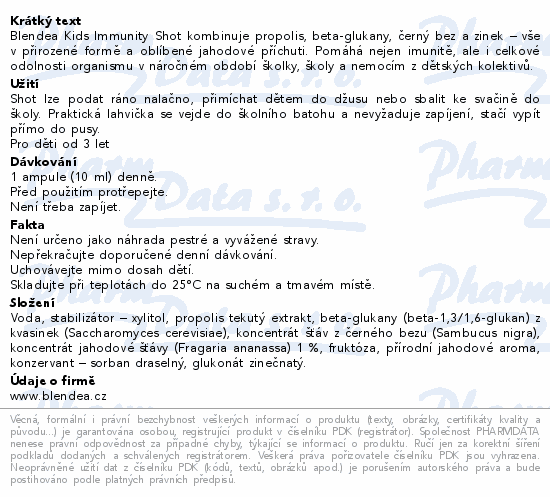 Blendea Kids Immunity Shot kombinuje propolis, beta-glukany, černý bez a zinek – vše v přirozené formě a oblíbené jahodové příchuti. Pomáhá nejen imunitě, ale i celkové odolnosti organismu v náročném období školky, školy a nemocím z dětských kolektivů.