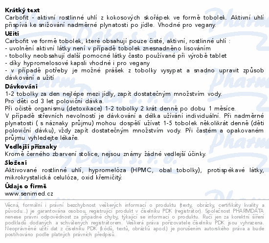 Carbofit - přírodní aktivované rostlinné uhlí v rostlinných tobolkách. 1 tobolka...