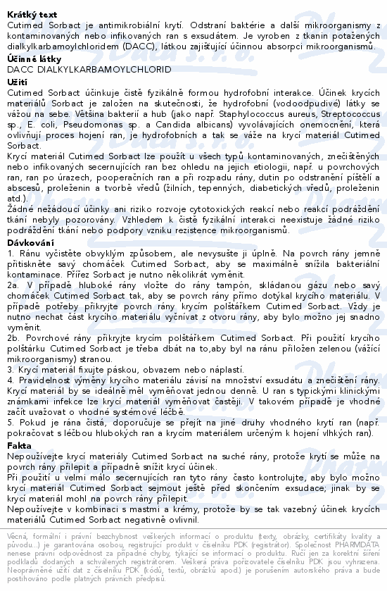 Cutimed Sorbact je antimikrobiální krytí. Odstraní baktérie a další mikroorganismy z kontaminovaných nebo infikovaných ran s exsudátem. Je vyroben z tkanin potažených dialkylkarbamoylchloridem (DACC), látkou zajišťující účinnou absorpci mikroorganismů.