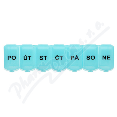 Dávkovač léků je rozdělen na 7 částí nebo pomocí zkratek názvů dnů v týdnu....