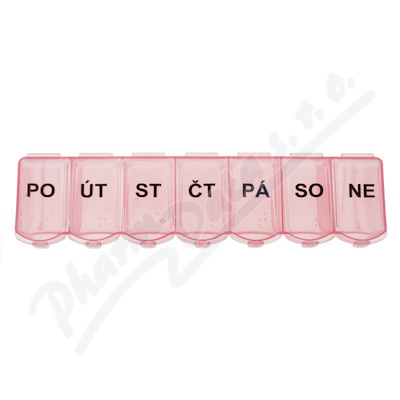 Dávkovač léků je rozdělen na 7 částí nebo pomocí zkratek názvů dnů v týdnu....