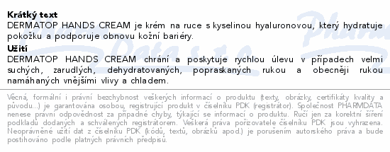 DERMATOP HANDS CREAM je krém na ruce s kyselinou hyaluronovou, který hydratuje...