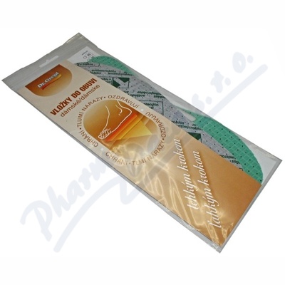 3-vrstvá stélka s antibakteriální úpravou textilu (fa Bayer), aktivního uhlí, protiskluzné mřížky doplněna klenkem a srdíčkem, protipachová s perforací