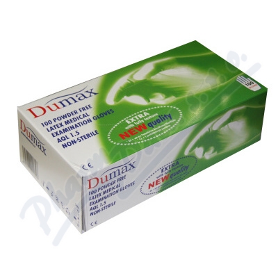 Dumax jsou vyšetřovací, latexové, nesterilní a nepudrované rukavice velikosti L, dodávány v balení po 100ks.