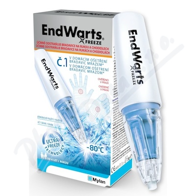 EndWarts Freeze je rychlý prostředek pro domácí ošetření bradavic, který účinně odstraňuje bradavice na rukou, pažích a chodidlech. Díky technologii Ultra Freeze Technology zmrazí bradavici na -80°C až do jejích nejhlubších vrstev. Vhodné od 4 let.