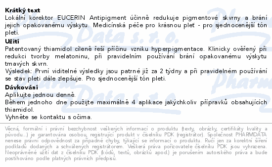 Lokální korektor EUCERIN Antipigment účinně redukuje pigmentové skvrny a brání jejich opakovanému výskytu. Medicínská péče pro krásnou pleť - pro sjednocenější tón pleti.