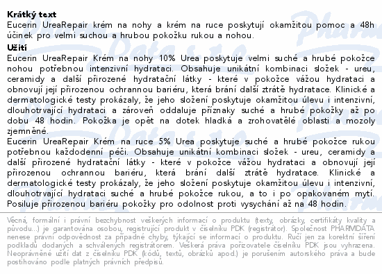 Eucerin UreaRepair krém na nohy a krém na ruce poskytují okamžitou pomoc a 48h účinek pro velmi suchou a hrubou pokožku rukou a nohou.