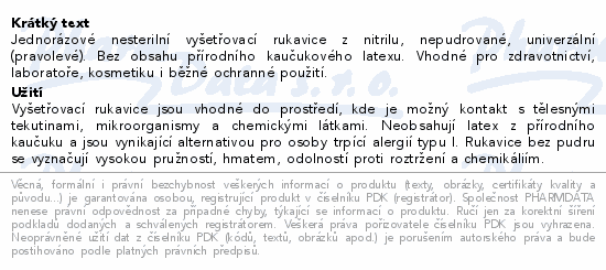 Jednorázové nesterilní vyšetřovací rukavice z nitrilu, nepudrované, univerzální (pravolevé). Bez obsahu přírodního kaučukového latexu. Vhodné pro zdravotnictví, laboratoře, kosmetiku i běžné ochranné použití.