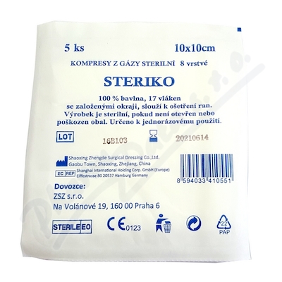 Gáza kompr.ster.Steriko 10x10cm-5ks 8 vrstev