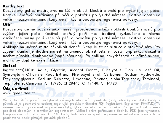 Green idea Kostivalový gel 250ml+50ml 20% NAVÍC