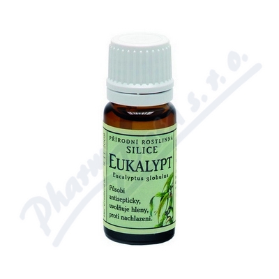 Eucalyptus globulus - přírodní rostlinná silice určená pro aromaterapii. Působí antisepticky, uvolňuje hleny, proti nachlazení.