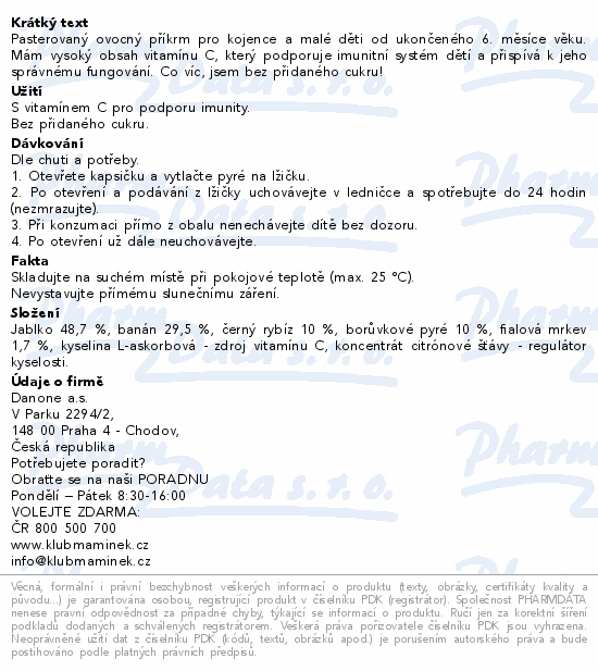 Pasterovaný ovocný příkrm pro kojence a malé děti od ukončeného 6. měsíce věku. Mám vysoký obsah vitamínu C, který podporuje imunitní systém dětí a přispívá k jeho správnému fungování. Co víc, jsem bez přidaného cukru!