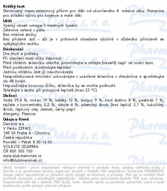 Masozeleninový sterilovaný příkrm pro malé děti od ukončeného 12. měsíce. Je...