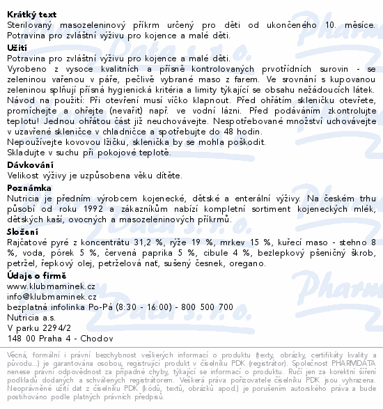 Sterilovaný masozeleninový příkrm určený pro děti od ukončeného 10. měsíce. Potravina pro zvláštní výživu pro kojence a malé děti.