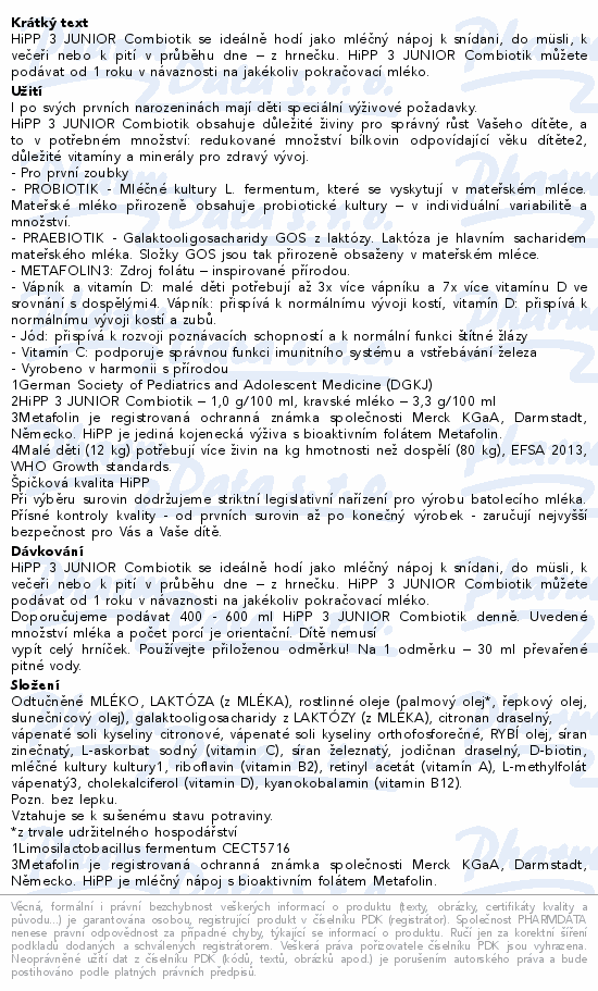 HiPP 3 JUNIOR Combiotik se ideálně hodí jako mléčný nápoj k snídani, do müsli,...