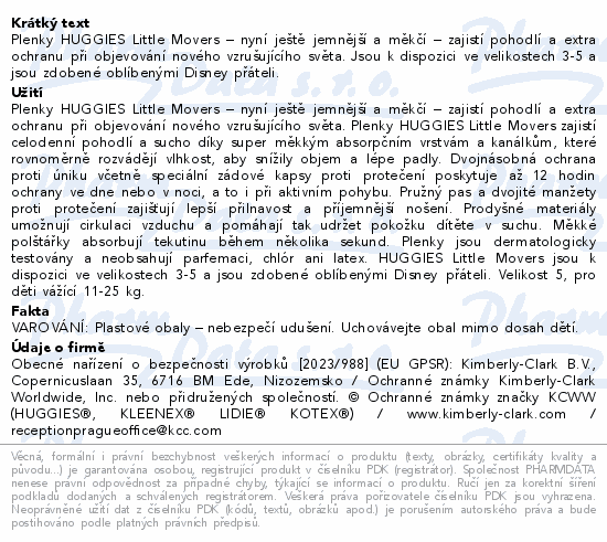 Plenky HUGGIES Little Movers – nyní ještě jemnější a měkčí – zajistí pohodlí a extra ochranu při objevování nového vzrušujícího světa. Jsou k dispozici ve velikostech 3-5 a jsou zdobené oblíbenými Disney přáteli.