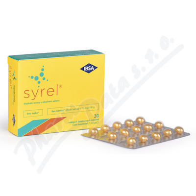 Syrel IBSA, doplněk stravy s obsahem organického selenu v biologicky dostupné formě L-selenomethionin, 30 měkkých tobolek. Obsahuje selen 100 mcg (182 % RHP) a extrakt z černého pepře Bioperine 5 mg. Selen podporuje činnost štítné žlázy.