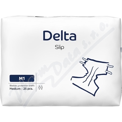 Delta Slip, řada zalepovacích plenkových kalhotek. Anatomicky tvarované zalepovací kalhotky nabízejí optimální přizpůsobení tělesným proporcím uživatele a v kombinaci s bariérami a pružnými gumičkami v oblasti třísel zajišťují větší pohodlí.