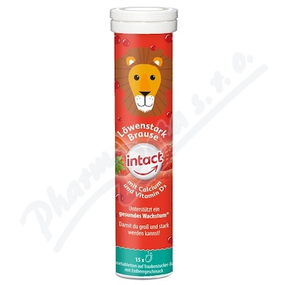 Intact Silný lev s vápníkem, vitaminem D3 a hroznovým cukrem podporuje zdravý růst. Šumivé tablety s hroznovým cukrem s příchutí jahody.
