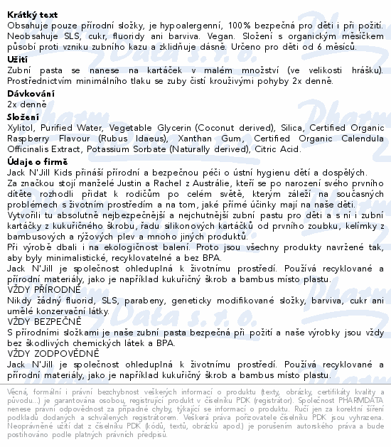 Jack N Jill Přírodní zubní pasta dětská Malina 50g