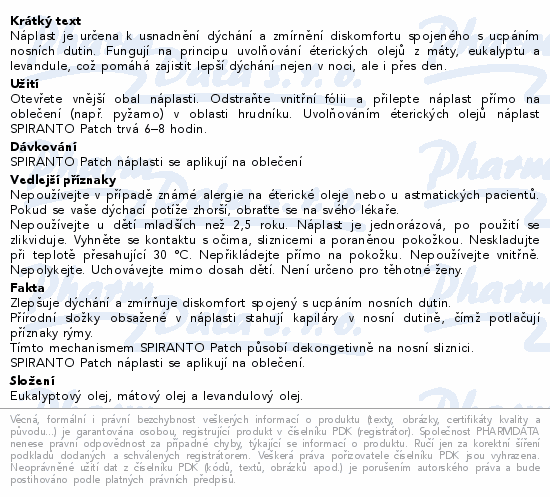 Náplast je určena k usnadnění dýchání a zmírnění diskomfortu spojeného s ucpáním nosních dutin. Fungují na principu uvolňování éterických olejů z máty, eukalyptu a levandule, což pomáhá zajistit lepší dýchání nejen v noci, ale i přes den.