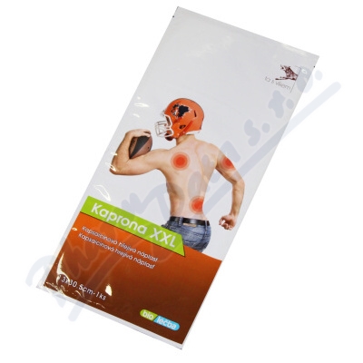 Kapsaicinová náplast KAPRONA XXL rozměrů 13 x 30, 5 cm s novou technologií, kdy i při snížené teplotě prochází do těla všechny účinné látky najednou, s dlouhotrvajícím efektem přinášejícím úlevu. Vynikající poměr cena