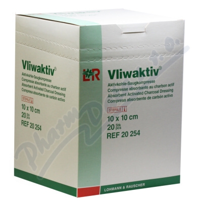 Komprese s aktivním uhlím nelepící se na rány, se savým jádrem absorbujícím zápach a bakterie s nepropustnou fólií. Komprese je z netkané texxtilie, účinná na infikované hnisavé rány, vysoce savá.