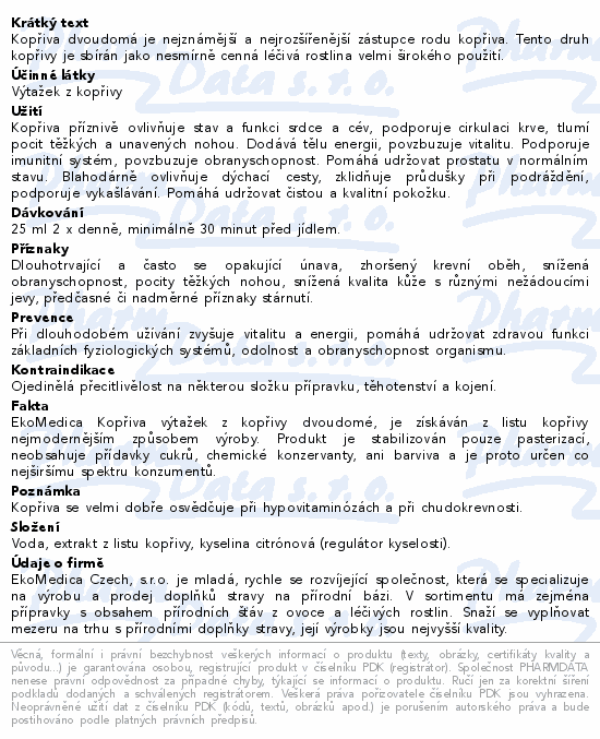 Kopřiva výtažek z kopřivy 500ml EkoMedica