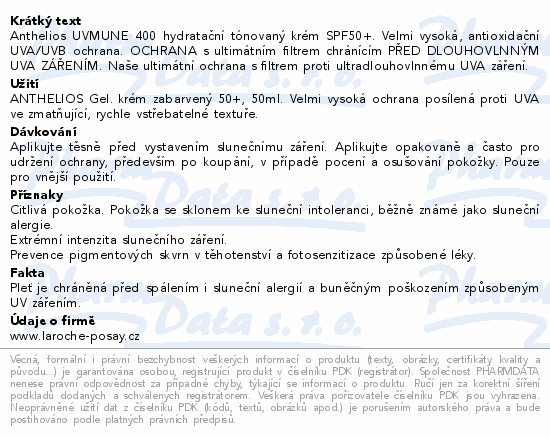 Anthelios UVMUNE 400 hydratační tónovaný krém SPF50+. Velmi vysoká, antioxidační UVA