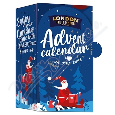Adventní čajový kalendář London Fruit & Herb. Veselé a hravé balení ve vánočním designu, obsahující 24 čajových sáčků. Klopy na přední straně krabičky jsou otevírací, proto může sloužit i jako dekorace po dobu Vánoc.