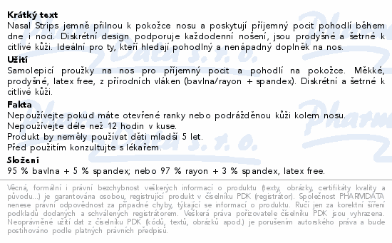 Nasal Strips jemně přilnou k pokožce nosu a poskytují příjemný pocit pohodlí během dne i noci. Diskrétní design podporuje každodenní nošení, jsou prodyšné a šetrné k citlivé kůži. Ideální pro ty, kteří hledají pohodlný a nenápadný doplněk na nos.
