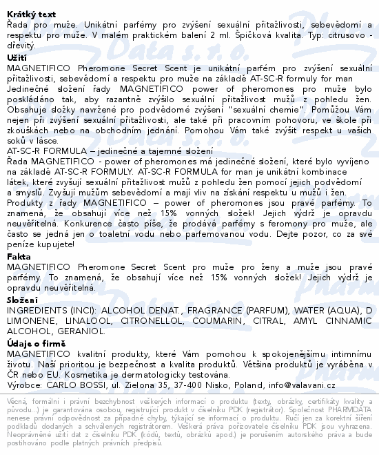 Celotělový masážní afrodiziakální olej z řady MAGNETIFICO - power of pheromones...