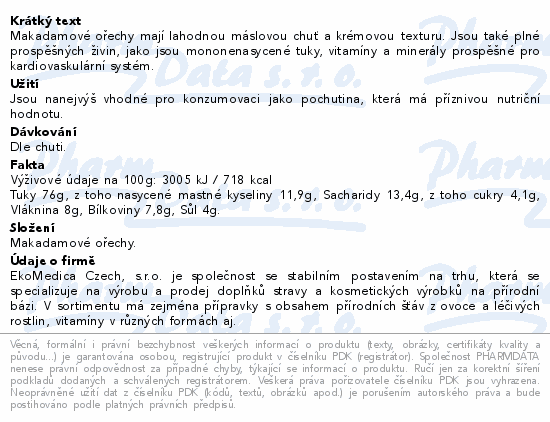 Makadamové ořechy 250g EkoMedica