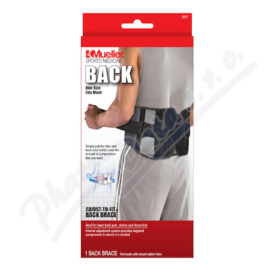 Produktová řada Mueller Adjust-To-Fit® pomáhá zabránit dalšímu zranění tím, že omezuje rozsah pohybu a urychluje tak zotavení. Patentované, nastavitelné vnitřní popruhy poskytují komfortní zpevnění bederní oblasti a snadno se uchycují.