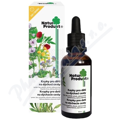 Naturprodukt Kapky pro děti na dýchací cesty je bylinný přípravek s tymiánem, lípou, petrklíčem a plícníkem lékařským.