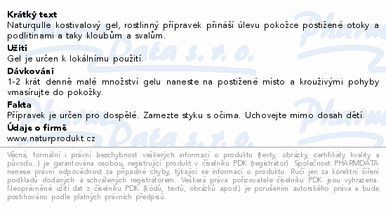 Naturqulle kostivalový gel, rostlinný přípravek přináší úlevu pokožce postižené otoky a podlitinami a taky kloubům a svalům.