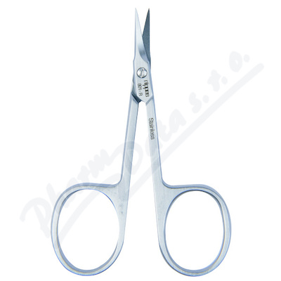 Nůžky Nippes Solingen zahnuté špičaté: lze s nimi snadno rovnoměrně stříhat uvolněnou a odumřelou kůži a odstranit šetrně záděry kolem nehtů.