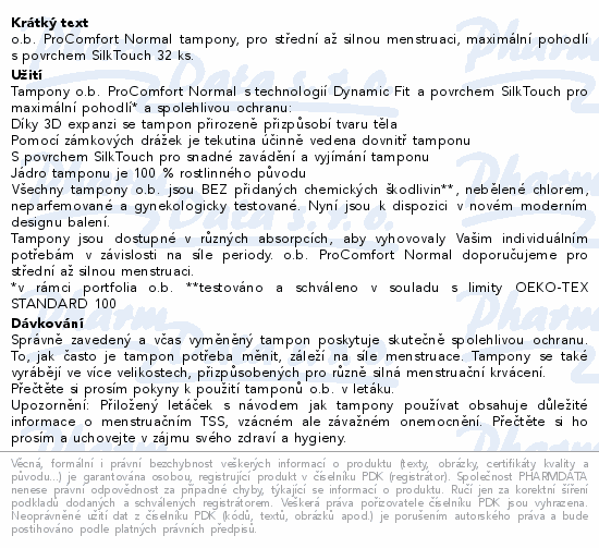 o.b. ProComfort Normal tampony, pro střední až silnou menstruaci, maximální pohodlí s povrchem SilkTouch 32 ks.