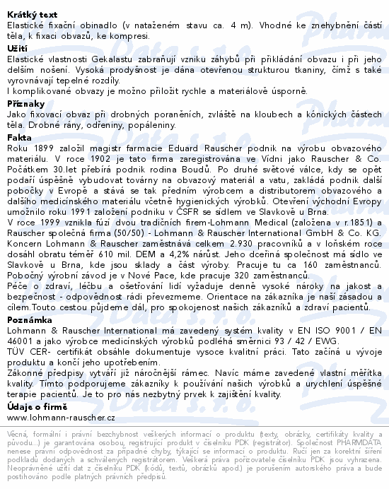 Elastické fixační obinadlo (v nataženém stavu ca. 4 m). Vhodné ke znehybnění částí těla, k fixaci obvazů, ke kompresi.