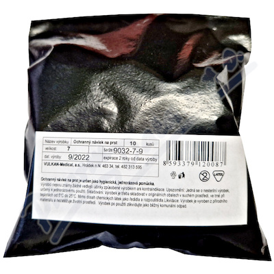 Ochranný návlek na prst, latexový, velikost číslo 7. Balení je po 10 kusech v PE černém sáčku. Výrobce VULKAN-Medical, a.s..