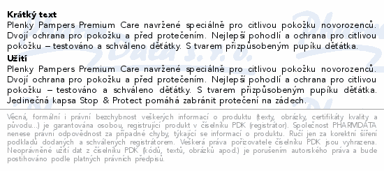 Plenky Pampers Premium Care navržené speciálně pro citlivou pokožku novorozenců. Dvojí ochrana pro pokožku a před protečením. Nejlepší pohodlí a ochrana pro citlivou pokožku – testováno a schváleno děťátky. S tvarem přizpůsobeným pupíku děťátka.