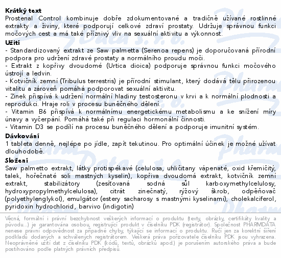 Prostenal Control kombinuje dobře zdokumentované a tradičně užívané rostlinné...