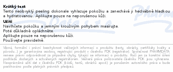 Tento neobvyklý peeling dokonale vyhlazuje pokožku a zanechává ji hedvábně hladkou a hydratovanou. Aplikujte pouze na neporušenou kůži.